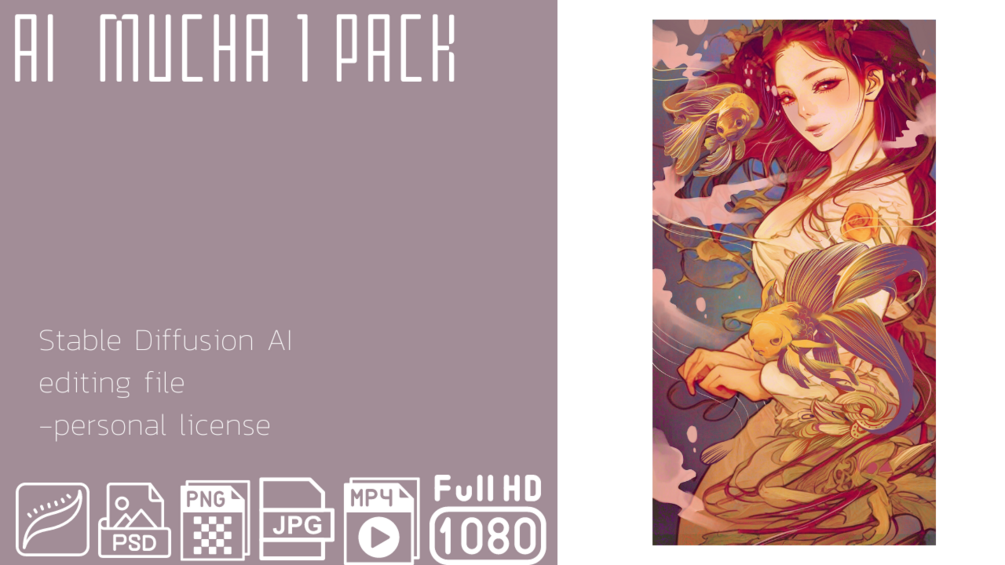 Png,Jpg,mp4,psd,procreate file and original generated file ,goldfish prob from Dall-E ai